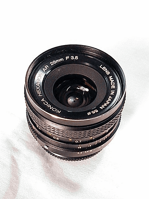 Use Konica SLR lenses on 4:3 Olympus E300 Digital Cameras. Use no adapter because the mount is partly compatible (unscrew the black plate at the back of the lens, and the aperture lever; 5 screws total, put some felt pads on the rear of the lens to get some tension, and you're done. Add a new light-baffle of card-board on the end of the lens to limit the amount of light to the 25mm circle of 4:3. This make sharper images.